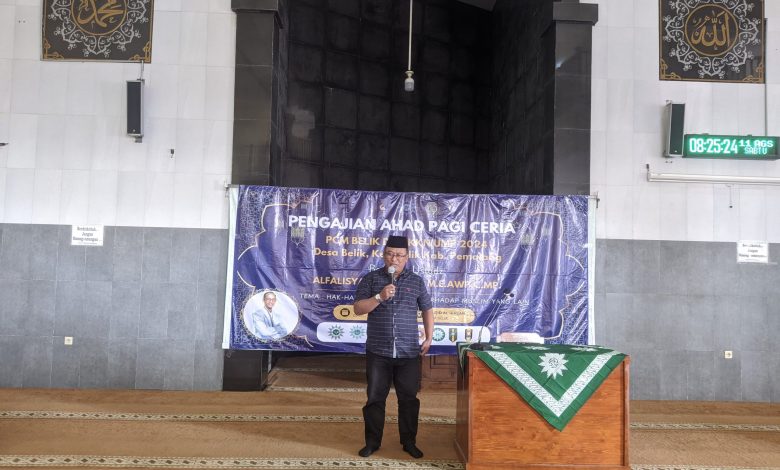 Pemalang-Camat Belik Muchammad Maksum S.IP menghadiri Pengajian Ahad Pagi Ceria yang diadakan oleh Pimpinan Cabang Muhammadiyah (PCM) Belik bersama mahasiswa Kuliah Kerja Nyata (KKN) dari Universitas Muhammadiyah Purwokerto (UMP). Acara tersebut diselenggarakan di Masjid Al-Ikhsan Belik pada Ahad pagi. Minggu.(11/08/2024).